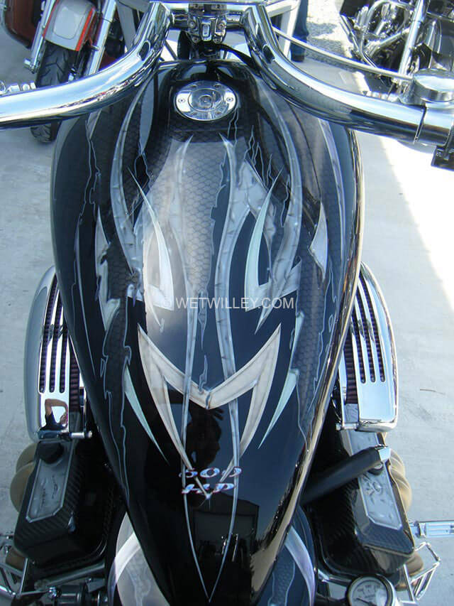 Wet Willey Design has won more than 500 local and national Best Paint & Graphics awards, and Mike ‘Wet’ Willey is the only painter in the world to win 11 consecutive House of Kolor Prestigious Painter of the Year awards.