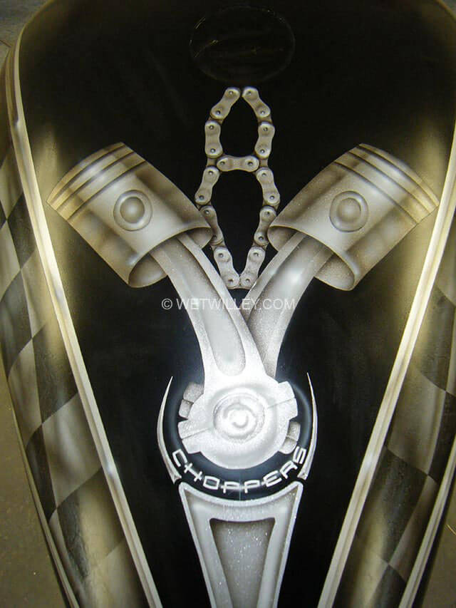 Wet Willey Design is a full-time custom paint and graphic art studio with over 40 years of experience. All metal art is done in-house, this way perfection can be achieved.